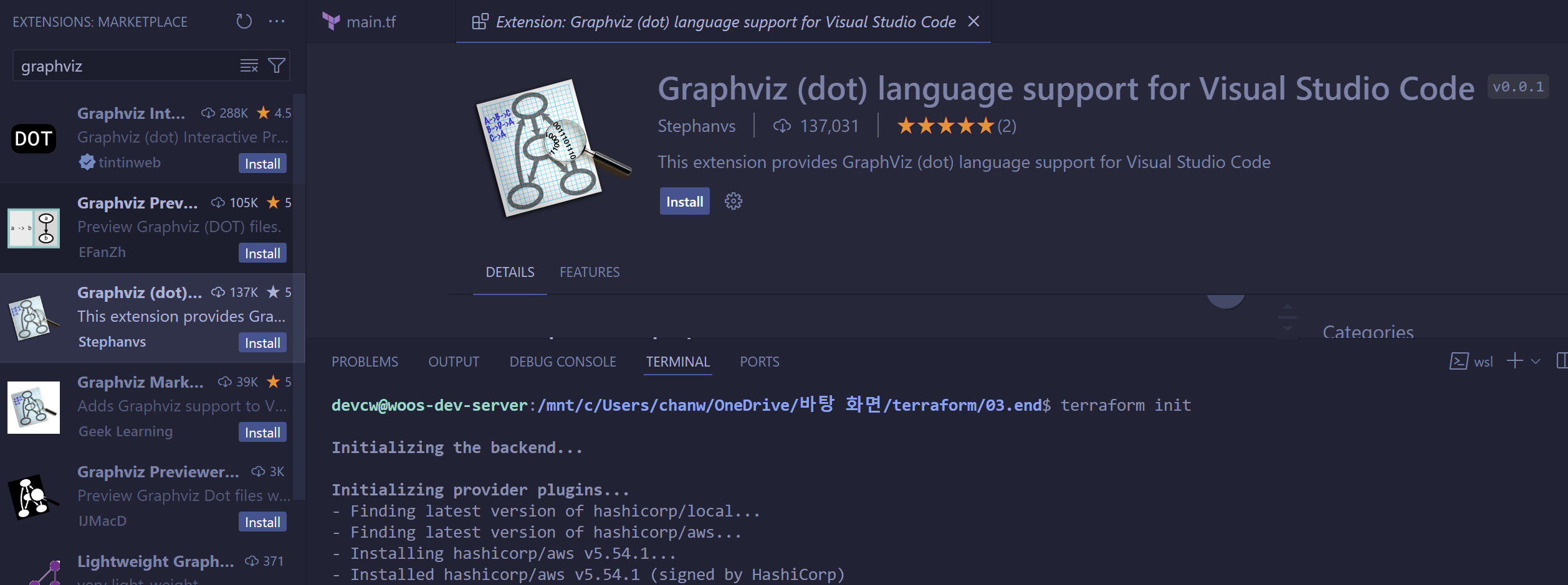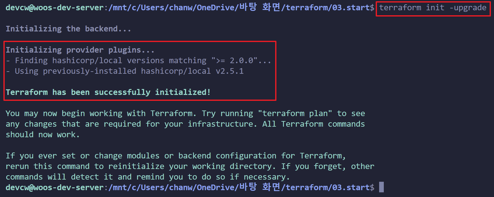 - main.tf ์ฝ๋ํ์ผ์ ์์ ํ init ๋ช ๋ น ์คํ ๊ฒฐ๊ณผ