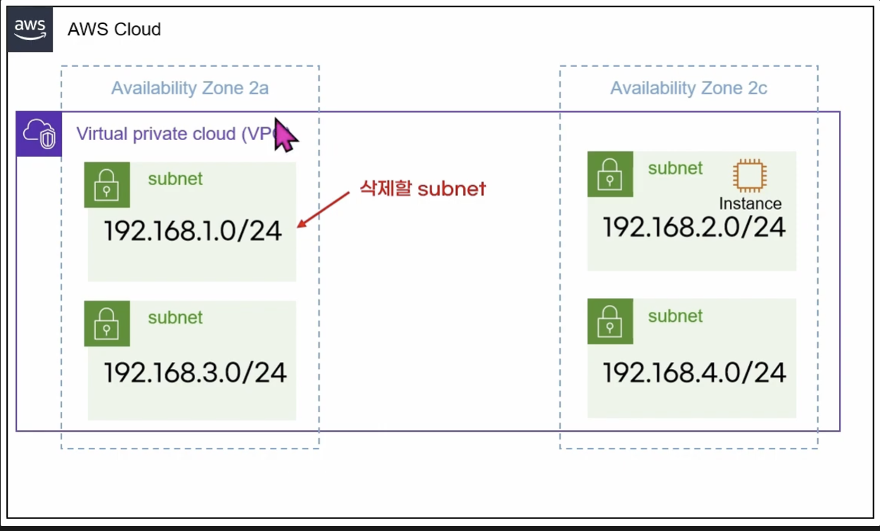 ๊ธฐ์กด VPC, Subnet ๊ตฌ์ฑ์ ์ ๊ฑฐํ์๊ณ , ๋ค์๊ณผ ๊ฐ์ด ์ค์ต ํ๊ฒฝ์ ๊ตฌ์ฑ/๋ฐฐํฌ ํ๋ค.