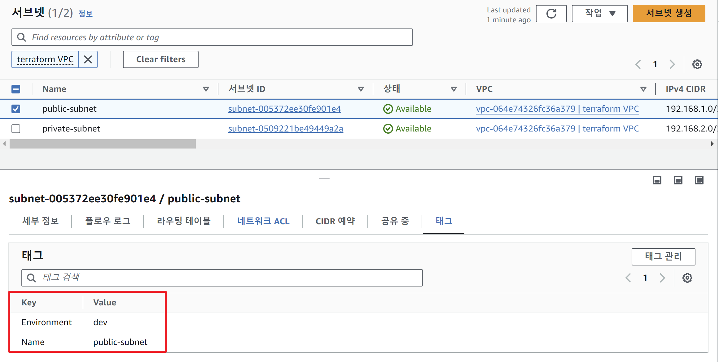 - ์๊ตฌ์ฌํญ : subnet tag๋ฅผ ์ค์ ํ๋ ๋ณ์ ์์ฑ