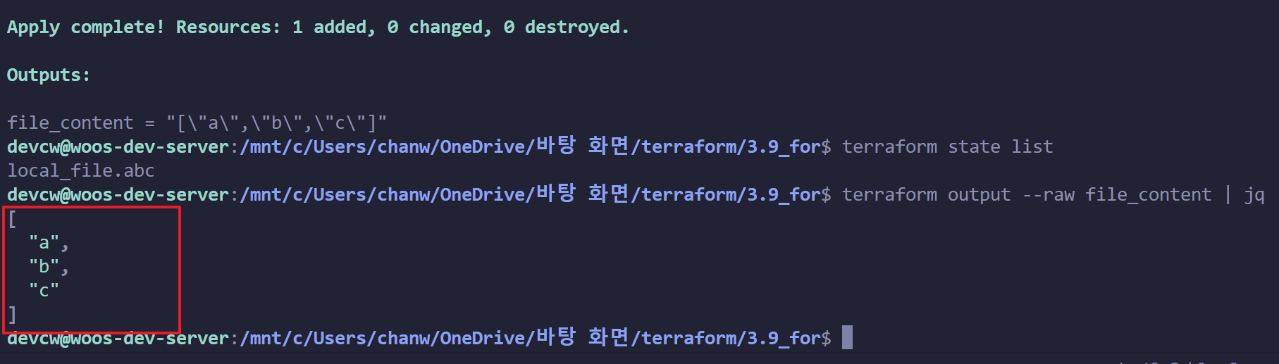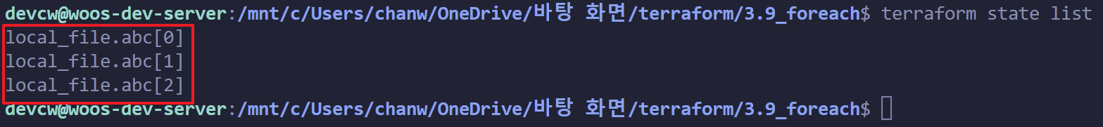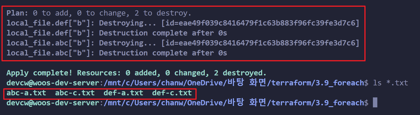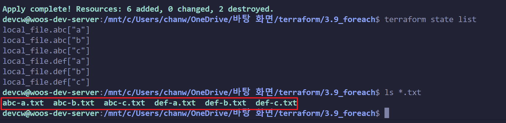 ๋ค์์ผ๋ก local_file.abc๋ ๋ณ์์ map ํํ์ ๊ฐ์ ์ฐธ์กฐํ๊ณ , local_file.def์ ๊ฒฝ์ฐ local_file.abc ๋ํ ๊ฒฐ๊ณผ๊ฐ map์ผ๋ก ๋ฐํ๋๋ฏ๋ก ๋ค์ for_each ๊ตฌ๋ฌธ์ ์ฌ์ฉํ ์ ์๋ค.