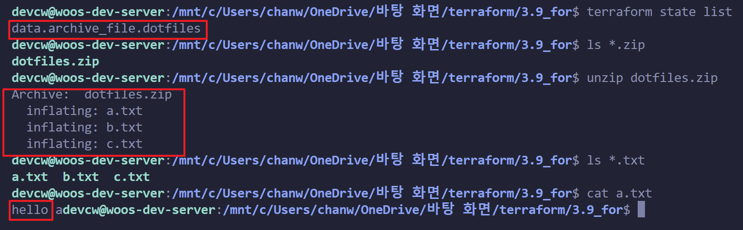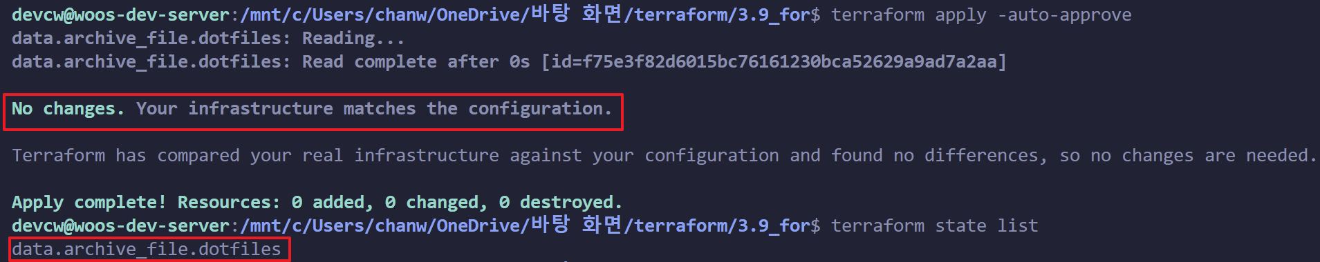 ํ๋ฒ archive ํ๋ก๋ฐ์ด๋์ archive_file์ source ๋ธ๋ก ์ ์ธ์ ๋ฐ๋ณตํ๋ ๊ฒฝ์ฐ terraform apply๋ฅผ ์ํํด ํ์ธํด๋ณด๊ฒ ๋ค. (์๋ก์ด ํ๋ก๋ฐ์ด๋๊ฐ ์ถ๊ฐ๋๋ ๊ฒฝ์ฐ terraform init ๋ช ๋ น์ด ํ์ํจ)