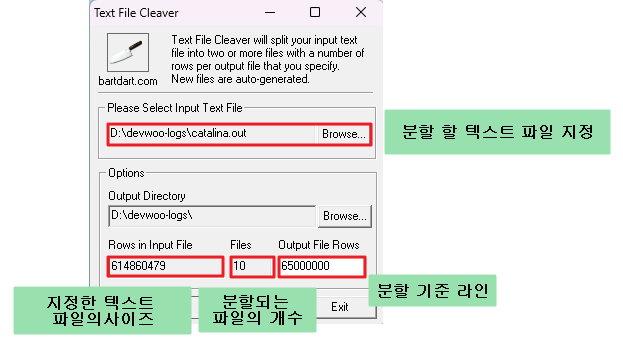 용량은 큰 텍스트의 파일을 라인(줄) 기반으로 분할해주는 프로그램이다.