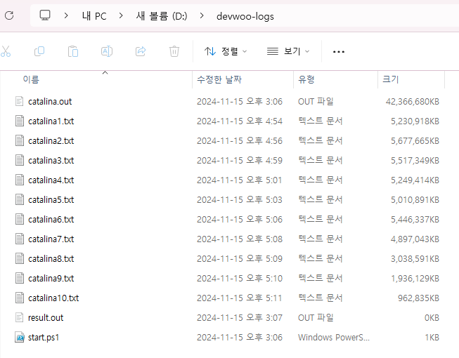 파일 분할이 정상적으로 완료되었다. 이제 내용 확인이 가능해졌다.