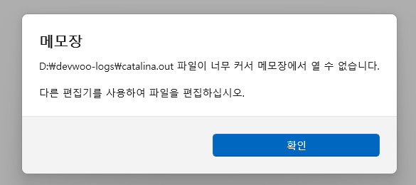 tomcat 로그를 확인하려하는데, 용량이 너무 커 메모장으로 열 수 없는 상황이다.