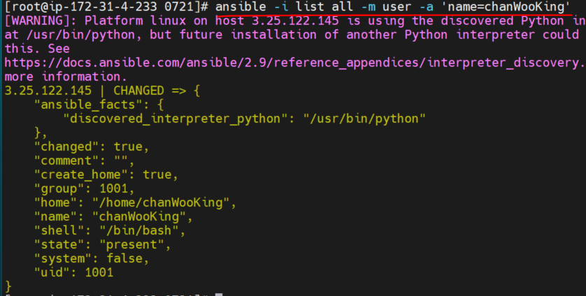 본인은 inventory를 새로 작성하여 진행했기 때문에 inventory를 -i 옵션으로 지정해주었다.
