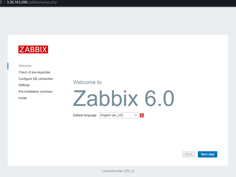 Zabbix 구성을 위한 기본 설정이 완료되었다.