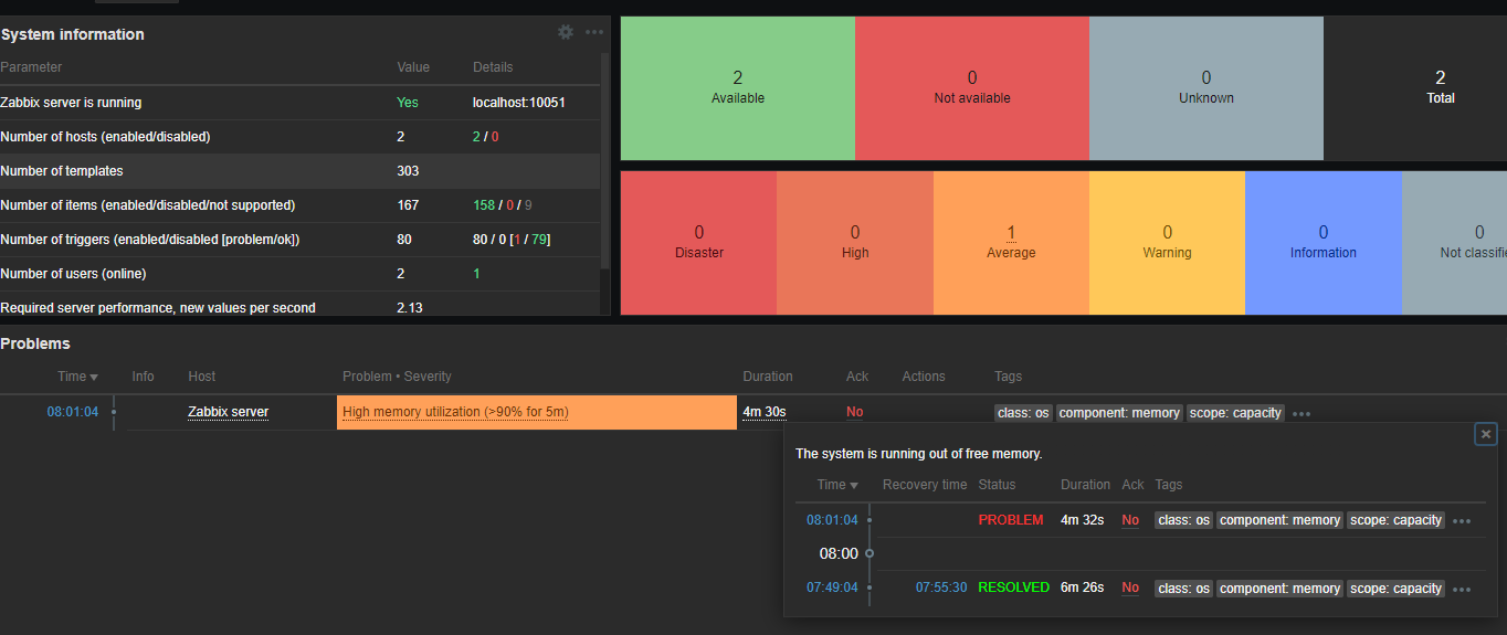 여기까지만 셋팅하더라도 zabbix default 설정으로 서버의 기본적인 모니터링은 가능하다