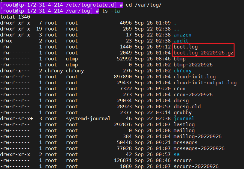 logrotate.d 내에 기본적으로 설정되있는 boot.log를 확인했다.