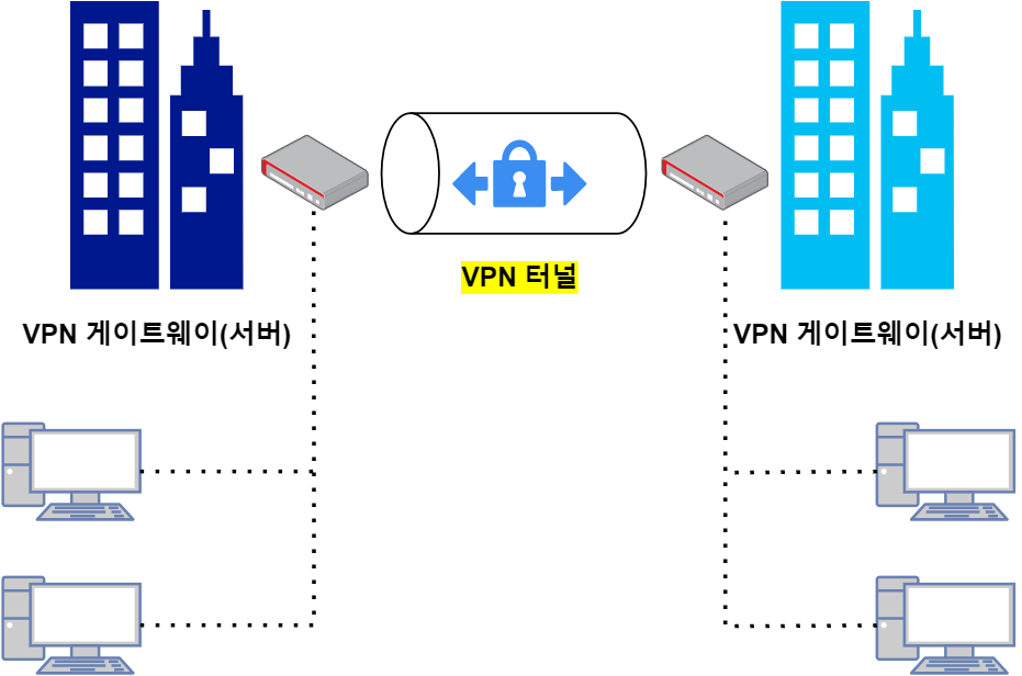 IPSEC VPN은 VPN 게이트웨이(서버) 장비 2 대를 서로 연결함으로써 네트워크와 네트워크를 연결하는 VPN이다.